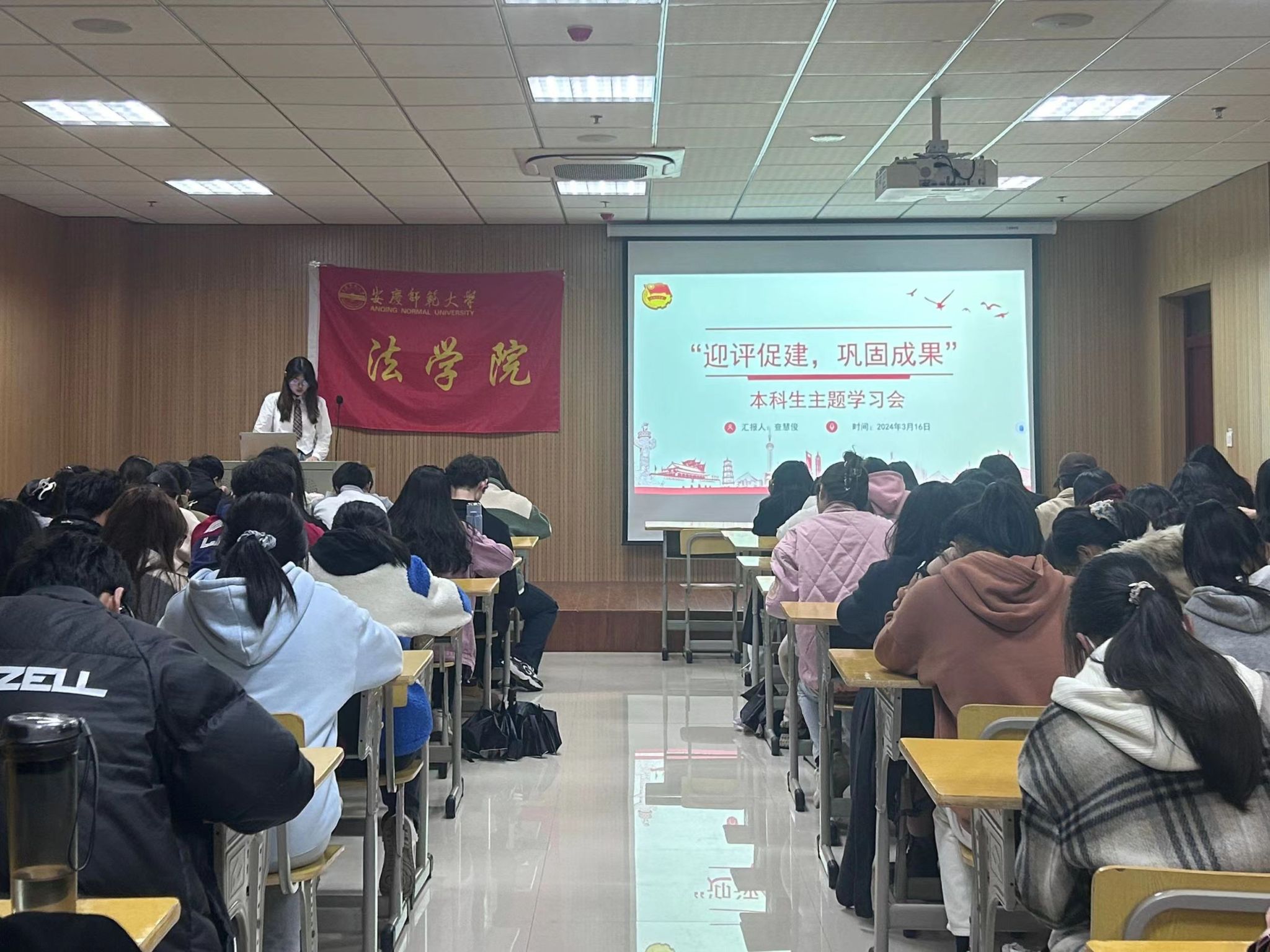为扎实做好审核评估各项准备工作,近日,sunbet申搏在O楼401教室举办“迎评促建”本科生主题学习会。sunbet申搏社会工作专业2022级查慧俊同学担任主讲人,sunbet申搏2022级和2023级近150名员工代表参加了本次主题学习会。