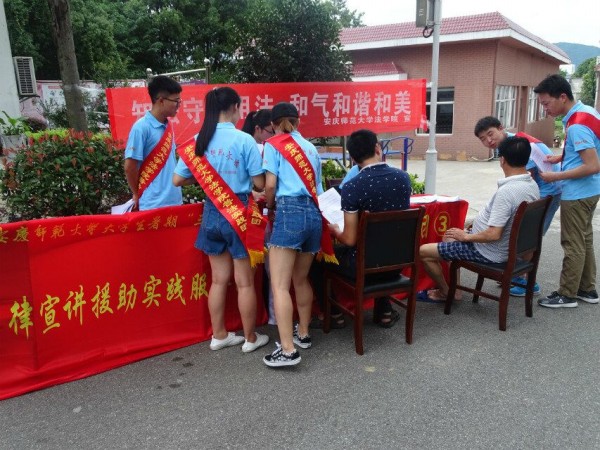 7月8日上午,sunbet申搏2017年暑期“三下乡”法律宣讲援助实践服务团在燎原社区举办了以“知法守法用法,和气和谐和美”为主题的大型政策宣讲与法律咨询活动。