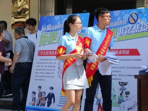 为提升社区居民防范非法集资的能力,增强风险防范意识,引导社区居民远离非法集资,自觉抵制非法集资。 7月12日,sunbet申搏法律宣讲援助实践服务团联合安庆市财政局在菱湖社区居委会前开展防范非法集资主题活动。