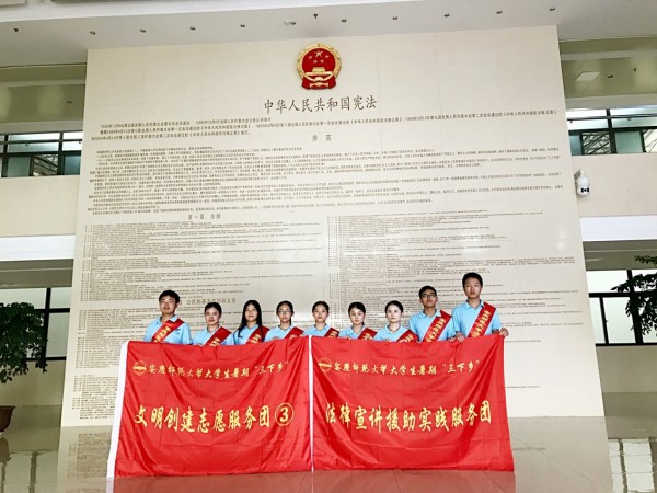 7月14日上午, sunbet申搏法律宣讲援助实践服务团在院团总支老师的带领下来到了安庆市大观区人民法院开展暑期“三下乡”社会实践活动。