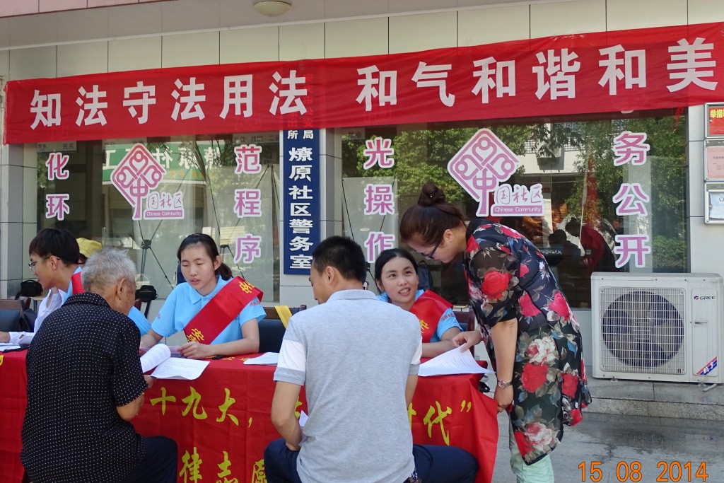 除了提供法律咨询服务,成员们还向过往的社区居民发放十九大的宣传资料、基础法律知识宣传单、社区居民需求问卷调查等各类宣传单,并进行详细的一对一的十九大内容解读和基础法律宣传。针对社区居民关心的网络购物、诈骗等问题,服务队也讲解了相关法律规定和注意事项,以案释法。
