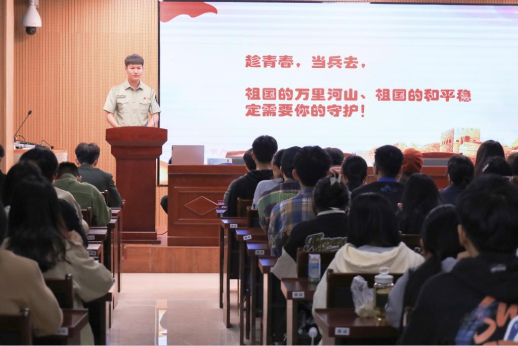 讲座邀请了该院法学专业2020(1)班的方春杰、法学专业2020(3)班的代伟以及法学类专业2021(3)班的金新鹏三位退役复学的老员工,为观众讲述他们的部队生活、普及参军入伍的相关条件和优惠政策。