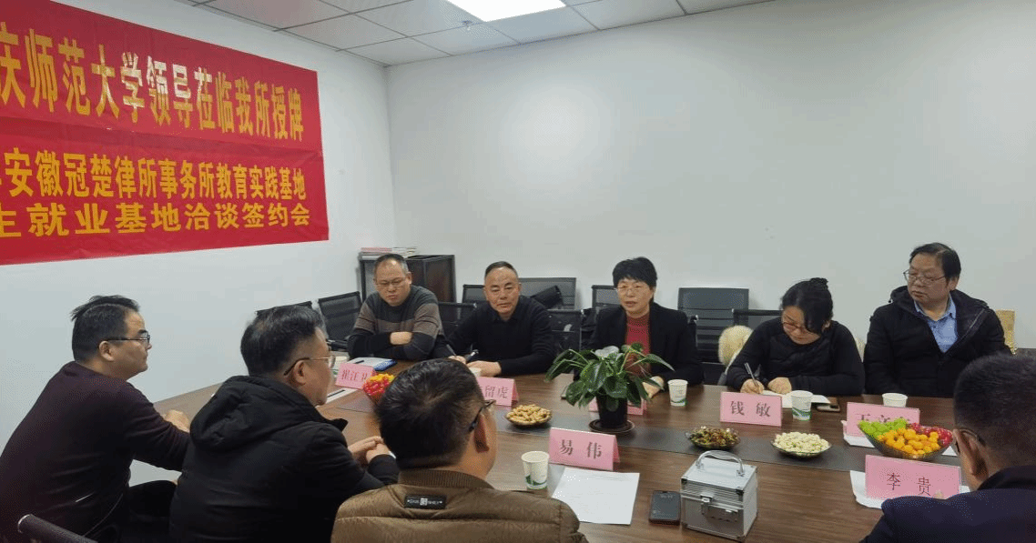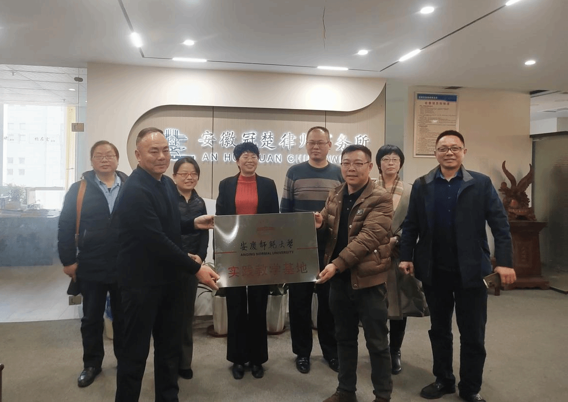 在安徽冠楚律师事务所,双方举行了共建实践教学和毕业生就业基地签约暨授牌仪式。