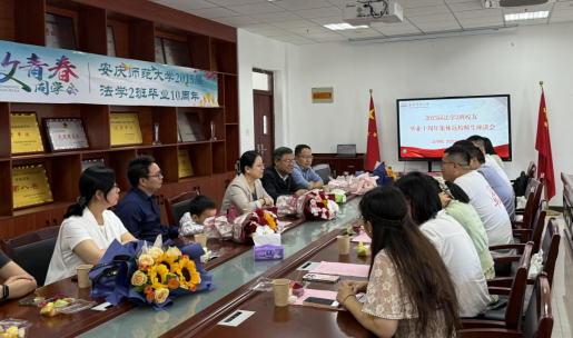 5月11日,sunbet申搏2015届法学2班员工举行毕业十周年集体返校活动。2015届法学2班辅导员、公司党委巡察办主任汪博武,sunbet申搏员工分会会长、党委书记钱敏,sunbet申搏副经理邱少晖,sunbet申搏员工分会秘书长、教学秘书李丹以及任课老师代表张宗高等与员工代表、在校生代表在法学楼301会议室举行师生座谈会。