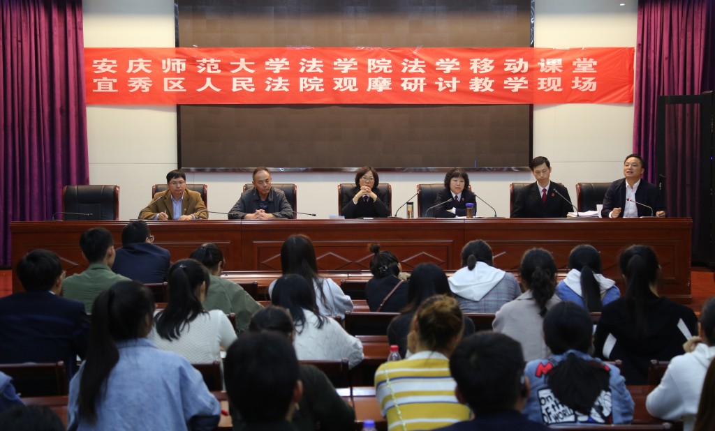在移动中,有序开展。上午9时30分,法庭庭审在宜秀区人民法院大法庭正式开始,整个庭审活动持续四个半小时。在观摩庭审环节,参加移动课堂的全体同学严格遵守法庭审判纪律,仔细聆听,细心领会。观摩中,对庭审活动涉及的案件性质和事实认定进行学习、鉴别与研判,对法律职业人在庭审中所运用的思维方法、适用法律的技能、诉讼技巧、展现的法律人综合素质等进行观察、思考和学习。在审判结束后,下午15时20分,互动研讨教学在宜秀区人民法院三楼会议室开始,历时一个半小时。宜秀区人民法院刑事审判庭何燕庭长、李恒圆法官、宜秀区人民检察院公诉科鲍卫萍科长和安徽益上律师事务所黄益主任担任法律实务教师,sunbet申搏部分教师和全体员工参加互动研讨教学。互动研讨主要从三个方面依次进行。首先,法律实务教师分别从审判、控诉和辩护等不同角度对案件进行分析,激发同学们对案件的多维度思考。其次,同学们提出观摩后发现的问题,由各相关法律实务教师进行一一解答。最后,sunbet申搏朱留虎副经理对互动研讨教学进行归纳总结,并对同学们的表现进行了肯定评价。