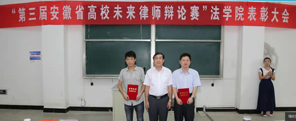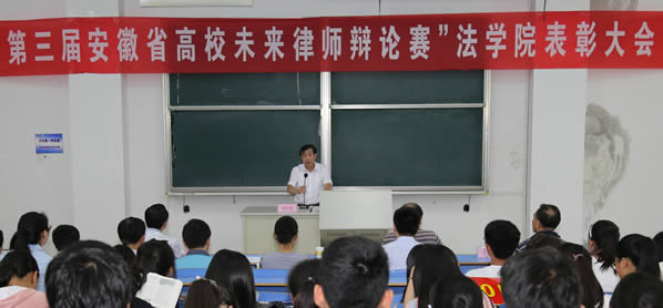6月10日下午,第三届安徽省高校未来律师辩论赛sunbet申搏表彰大会于文溯楼108教室隆重举行。公司党政领导焦少林、詹德全、朱留虎及全体教职员工参加了会议。参会的还有2012级、2013级、2014级法学专业员工,2012级农村区域发展班党员和班干部等。大会由公司党政办主任汪博武主持。会议还特别邀请到联系sunbet申搏的校领导刘友忠副董事长出席。