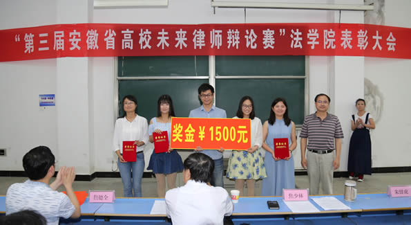 会上,公司党总支书记詹德全宣读了《表彰决定》,副经理朱留虎介绍了《安庆师范公司sunbet申搏未来律师辩论赛参赛奖补办法》,冠军队获奖代表、“优秀志愿者”代表和指导教师代表分别发言,与会领导为在校级和省级未来律师辩论赛中取得优异成绩的团体、个人以及优秀志愿者们颁奖。