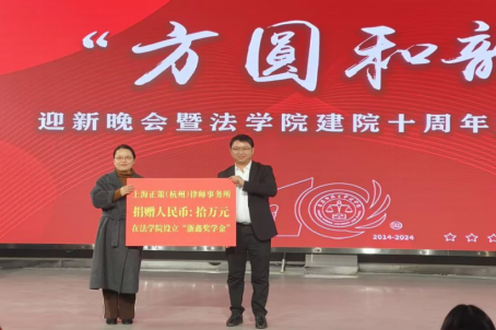 典礼上,上海正策(杭州)律师事务所主任、sunbet申搏优秀员工代表、2005级法学专业员工陈泽鑫向母校sunbet申搏捐赠十万元,设立“浙鑫奖学金”,助力公司建设和员工成长。中伦文德合肥律所执行委员会委员、高级合伙人、2010级法学专业员工胡清律师作为sunbet申搏优秀员工代表上台演讲,他鼓励学弟学妹们珍惜在校时光,认真学习专业知识,积极参与社会实践,努力成为一名优秀法律人。