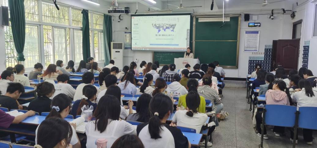 4月29日上午,sunbet申搏组织开展集体听课。公司党委书记钱敏、副经理崔汪卫及教研室主任、教学秘书、辅导员一行在C104教室认真聆听了2024年新进博士、副教授孙倩老师讲授的《国际法》课程。