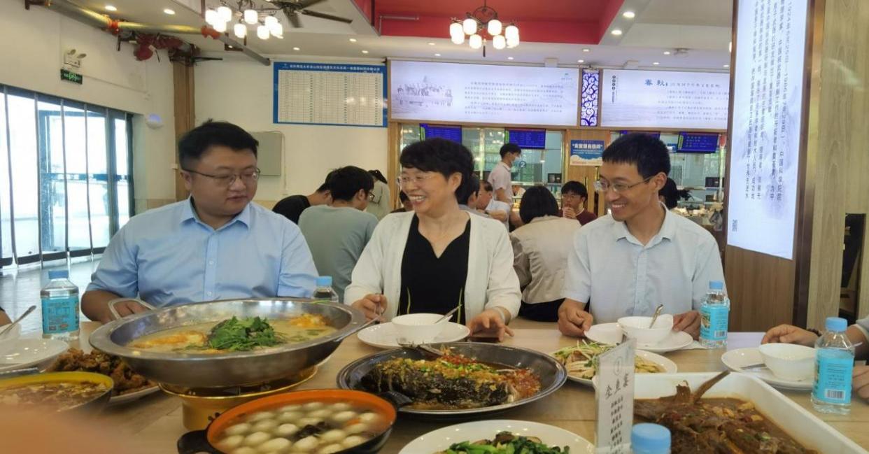 5月30日中午,sunbet申搏邀请2006届法学专业闫奇跃、查健生两位员工代表在东苑一食堂参加“全鱼宴”。董事长彭凤莲、副董事长刘友忠出席活动。法公司党委书记钱敏、部分教师代表、辅导员、员工代表、毕业生代表等共进午餐。师生充分感受到公司优质的生态环境,对双龙湖的鲜鱼美味赞不绝口。