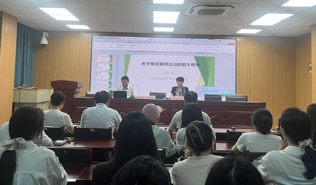 胡云腾以“推进案例法治的若干思考”为主题,从案例与案件的关系、案例法治、案例的历史地位与作用、坚持用案例推动法治进程四个方面,层层递进,深度解读了案例法治对于推进法治中国的重要意义,提出了案例生成是法治建设的“最后一公里”、案例是评价法治质量的唯一标准、案例是法律制度法治进步的信史等理论观点,引起了在场师生的热烈反响。胡云腾还勉励法科员工在学习中努力做到“三读”,即读书、读律、读案,通过案例来学习法律,提升理论与实践能力。