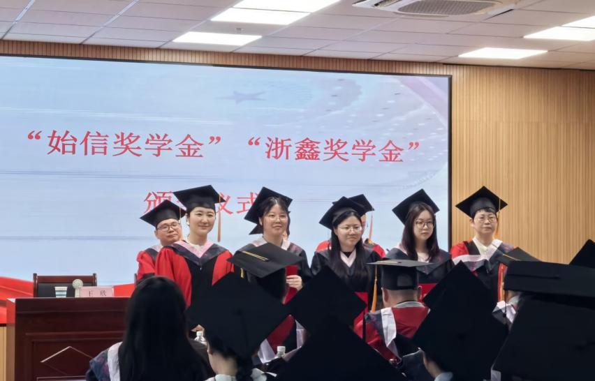 6月20日上午,sunbet申搏在102报告厅举行2025年度始信奖学金、浙鑫奖学金颁奖仪式。法公司党政领导班子全体成员、学位评定委员会全体成员、教师和辅导员代表、本科和硕士毕业生代表共100余人参加仪式。钱敏主持仪式。