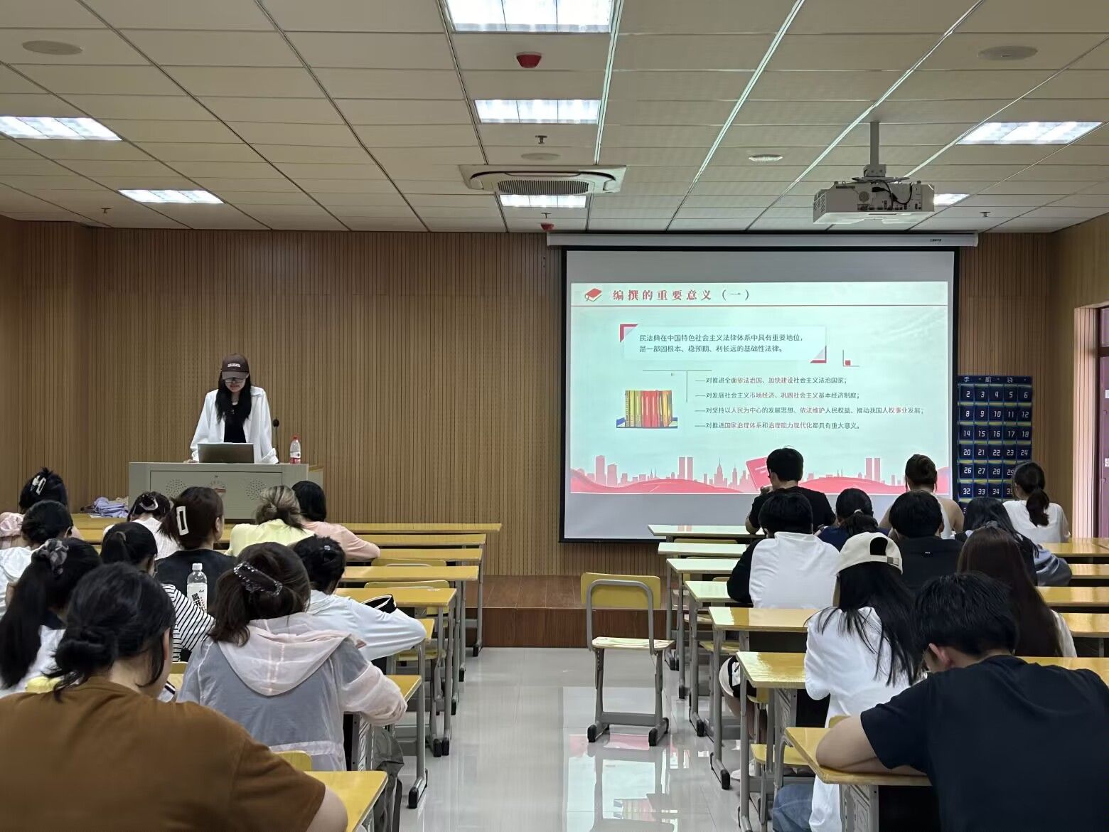 5月18日,sunbet申搏在O401教室举办了民法典主题团课活动。社会工作专业2023级员工辛敏担任此次团课主讲人,来自sunbet申搏近50名团员到场学习。