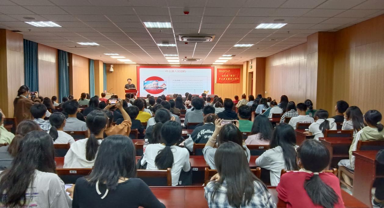 随后,刘金鹏从端正入党动机的重要性出发,结合自身的经历讲述如何成为一名合格的共产党员。他表示,端正入党动机是成为员工党员的第一粒“扣子”,只有思想上入党,行动上才能入党。他呼吁新生们广泛阅读党史书籍,感悟先辈思想。同时强调要积极参加党支部、社区志愿活动等,做到在实践中求真知、在实干中长本事。