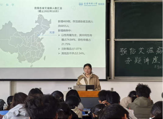 11月2日,校医院为sunbet申搏2024级全体新生开展“预防艾滋病”专题讲座,带领员工共同学习预防艾滋病相关知识,增强老员工的自我防范意识。本次讲座由校医院卞晓艳主讲。