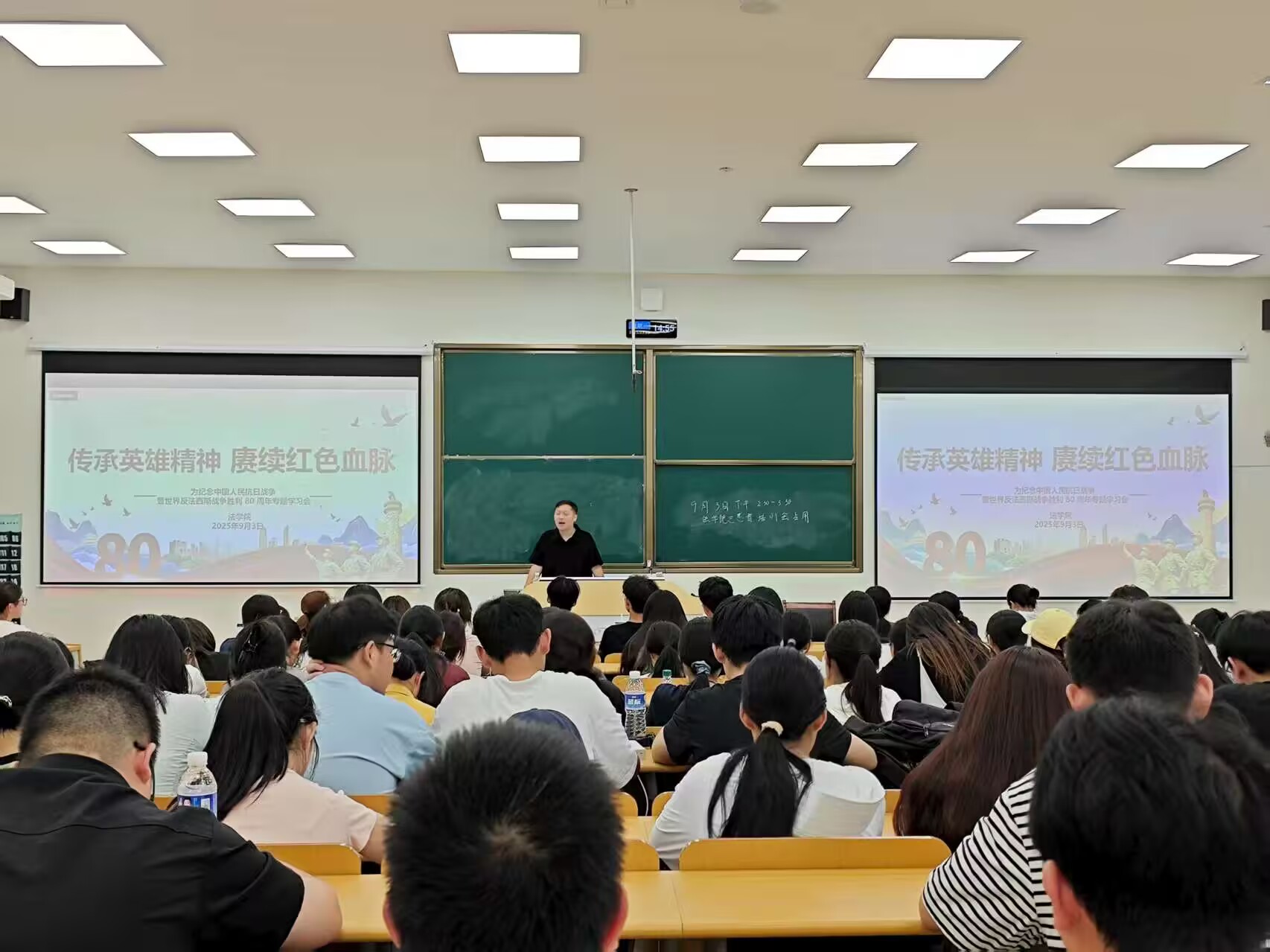 9月3日,sunbet申搏在教学楼C108教室开展纪念中国人民抗日战争暨世界反法西斯战争胜利80周年专题宣讲会。