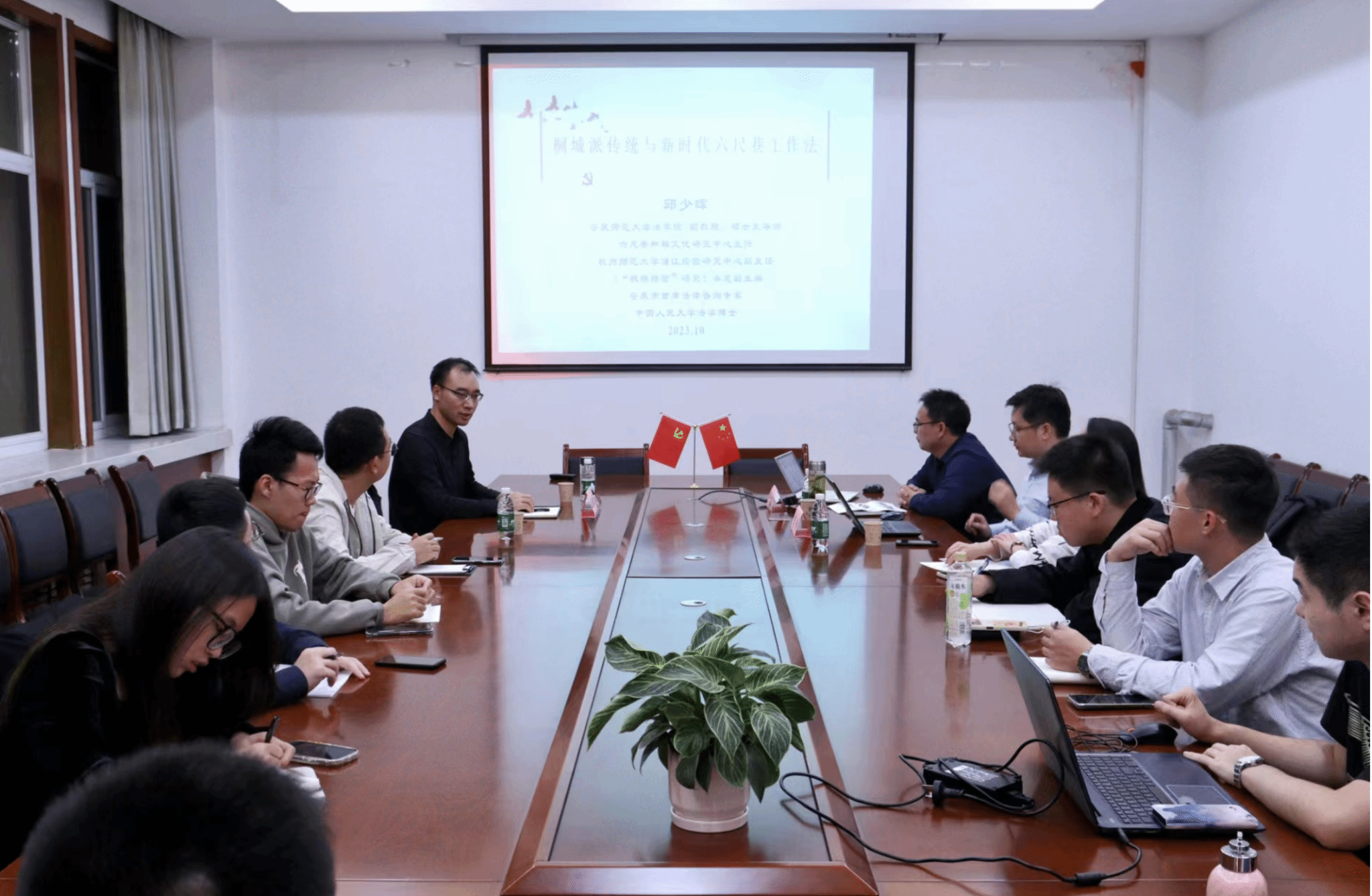 2023年10月27日,由西北政法大学法治公司、中华法系与法治文明研究院、枫桥经验与社会治理研究院、马锡五审判方式研究院共同主办的“长安法史论坛”第226期学术报告顺利举行。公司邱少晖副教授应邀以“桐城派传统与新时代六尺巷工作法”为题作学术报告。报告会由中华法系与法治文明研究院执行经理、枫桥经验与社会治理研究院副经理王斌通副教授主持,杭州师范大学沈钧儒sunbet申搏副教授、枫桥经验与法治建设研究中心副主任、硕士生导师曾威副教授与谈,西北政法大学部分博士生、硕士生聆听了报告。