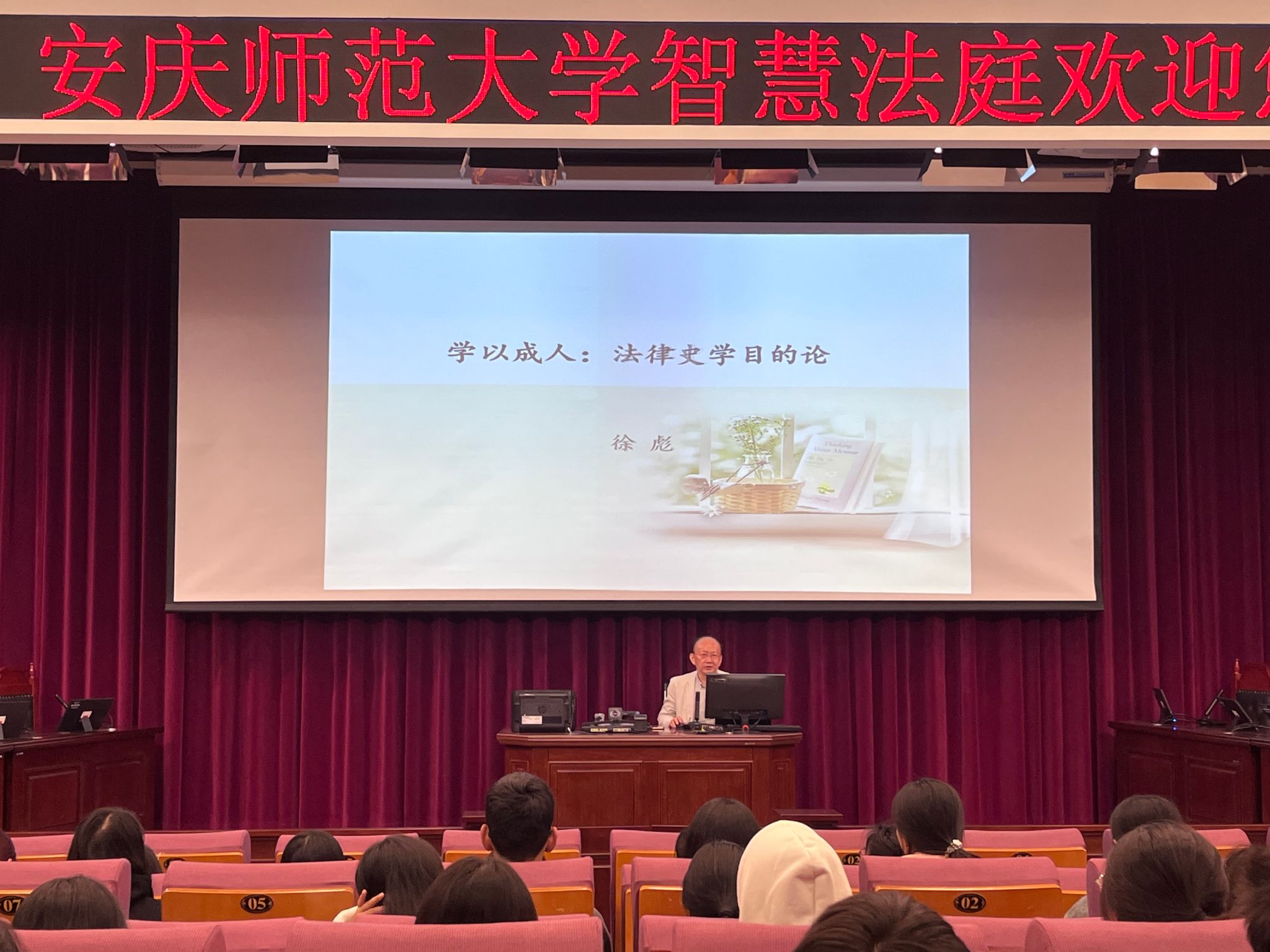 11月5日上午,安徽大学sunbet申搏徐彪教授应邀在模拟法庭作题为“学以成人:法律史学目的论”的学术报告,报告会由sunbet申搏副经理崔汪卫主持,sunbet申搏100余名本科生和部分研究生聆听报告。