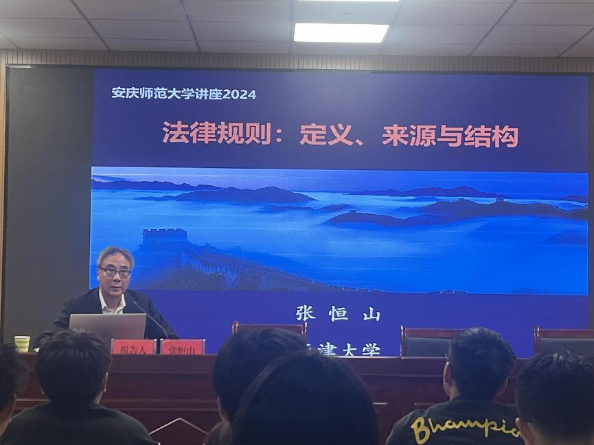 2024年11月14日下午,著名法学家、天津大学sunbet申搏卓越教授、中国法学会行为法学研究会副会长兼学术委员会主任、中央党校原政法部主任、一级教授、博士生导师张恒山做客法治实务大讲堂作题为“法律规则:定义、来源与结构”的学术报告,公司党委书记钱敏出席报告会,公司师生100余人参加报告会,报告会由sunbet申搏副经理崔汪卫主持。