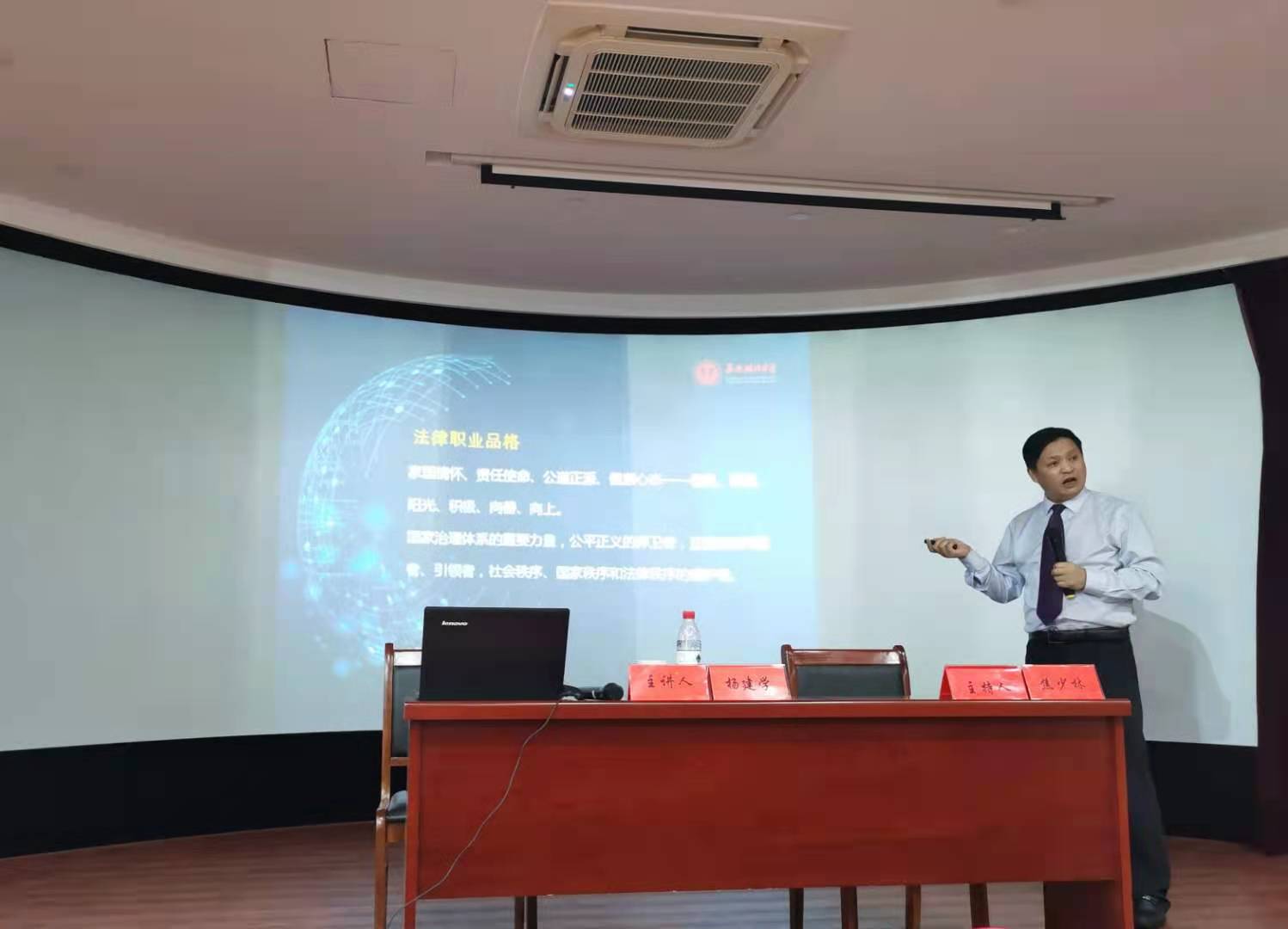 2021年6月25日下午,西南政法大学仲裁公司执行经理杨建学教授应邀莅临法治实务大讲堂,为sunbet申搏师生举行了主题为“法律职业素养的养成”为主题的讲座,sunbet申搏本科生、研究生和教师共计150人参加了讲座。讲座由经理焦少林主持。