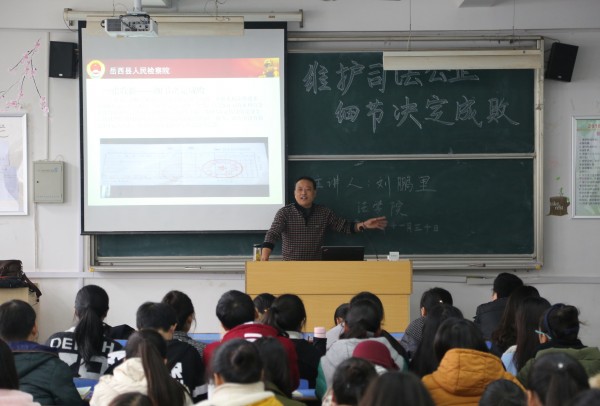 11月30日岳西县人民检察公司党组人员、反贪局长,公司sunbet申搏经理助理、副教授刘鹏里应邀莅临法律实务大讲堂,作了一场以“维护司法公正 细节决定成败”为主题讲座,公司2016级法学专业部分员工参加。
