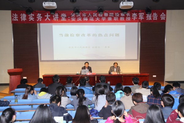 4月27日,安庆市人民检察院检察长、公司兼职教授李军应邀来公司法律实务大讲堂做了题为“当前检察改革的热点问题”的报告,该报告也是sunbet申搏发展战略研讨会系列报告之一。法公司党政领导和法学专业师生200余人参加了报告会,报告会由sunbet申搏经理焦少林教授主持。会后,董事长闵永新教授与李军检察长进行了座谈,闵董事长介绍了公司发展情况,对李军检察长和安庆市人民检察经理期以来对公司、特别是公司法学学科专业建设给予的关心和支持,表示感谢。